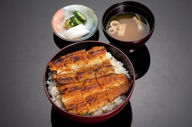 Donburi(grilled eel on rice)・miso soup ・ pickles